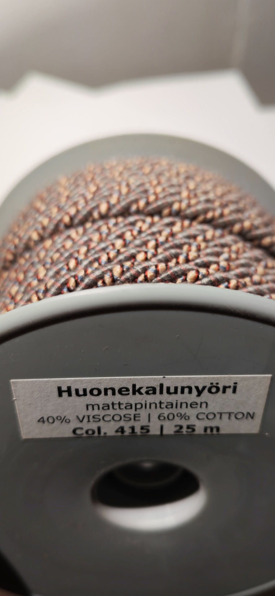Koristenyöri verhoiluun, lampunvarjostimiin tai askarteluun. Valmistettu 40% viskoosista ja 60% puuvillasta.