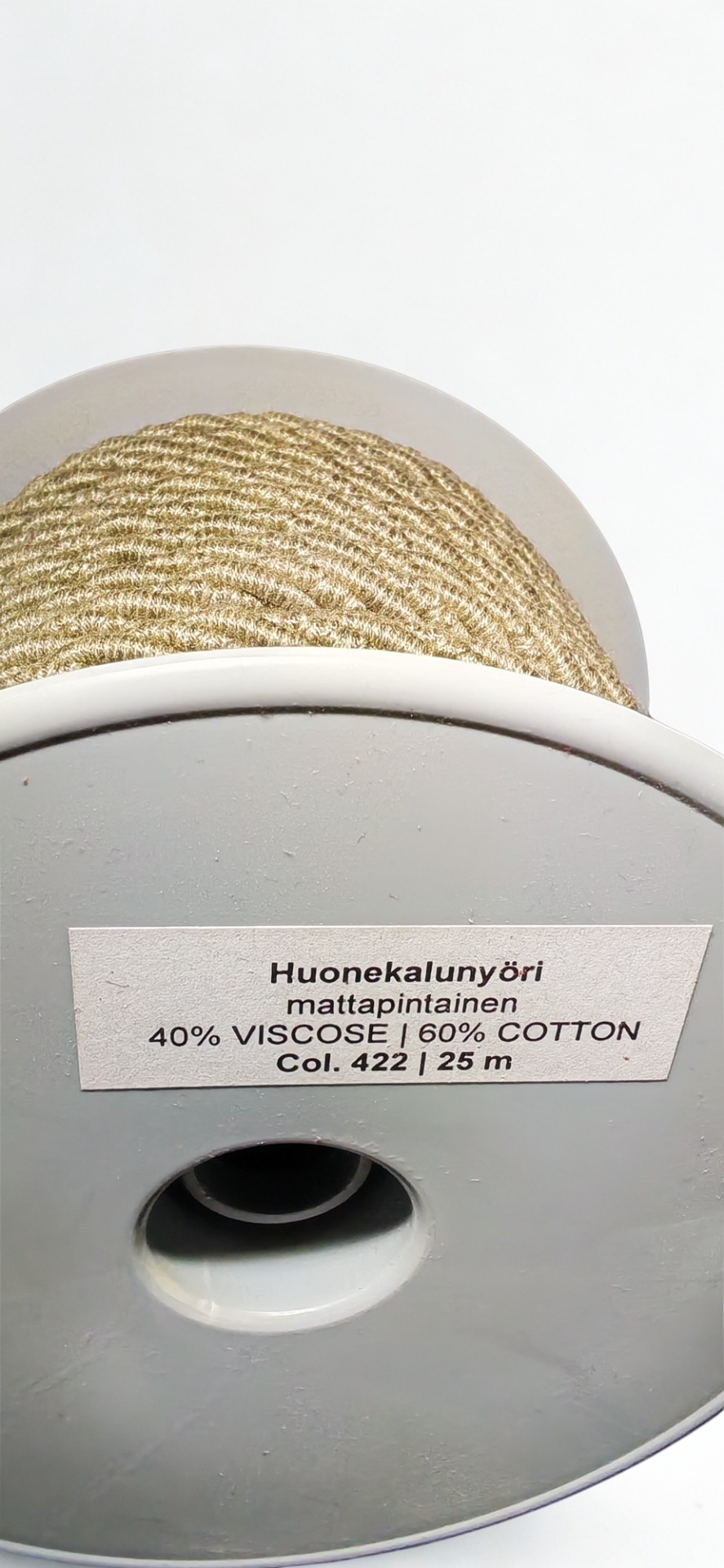 Koristenyöri verhoiluun, lampunvarjostimiin tai askarteluun.  Valmistettu 40% viskoosista ja 60% puuvillasta.