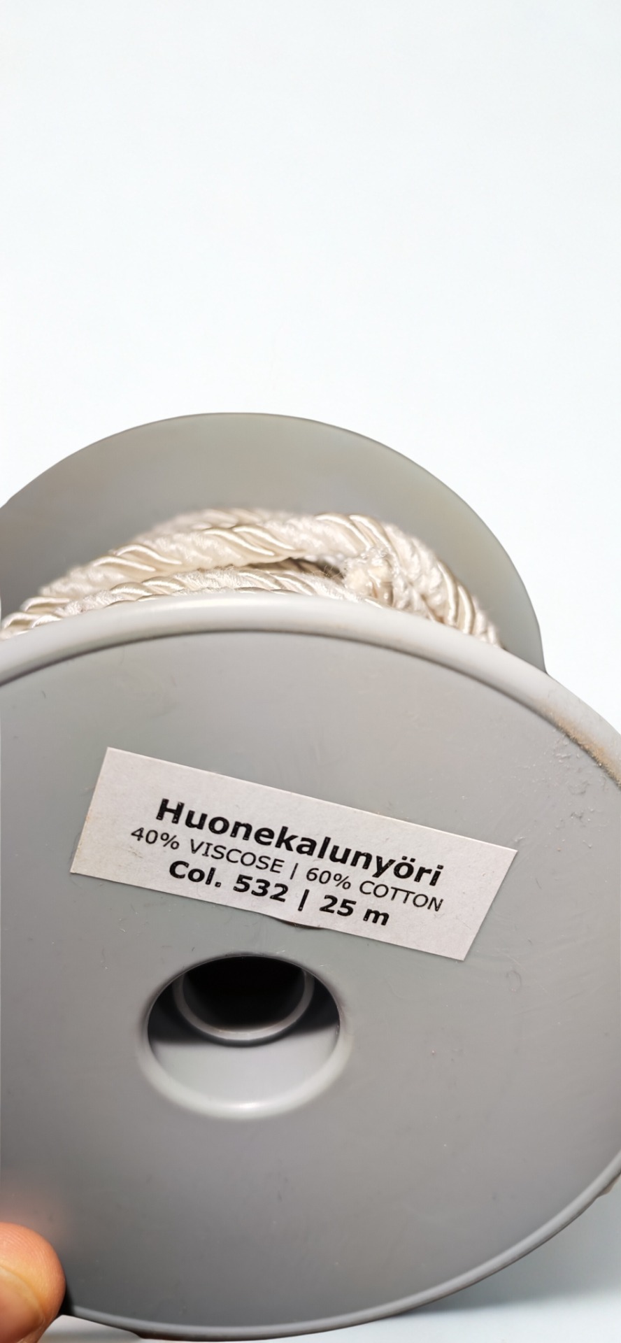 Koristenyöri verhoiluun, lampunvarjostimiin tai askarteluun. Valmistettu 40% viskoosista ja 60% puuvillasta.